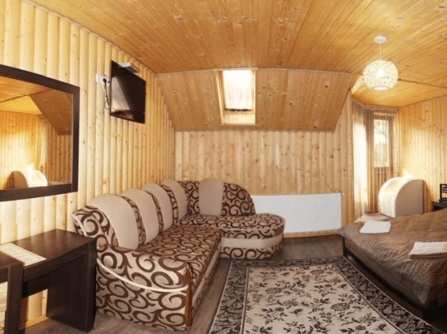 Однокомнатный номер общей площадью 20-24 кв.м. рассчитан на 2-3 местное размещение. Номер оборудован двуспальной кроватью, прикроватными тумбами, раскладным диваном с возможностью размещения дополнительного места, телевизором со спутниковым ТВ, комодом, шкафом для одежды. В номере есть выход на балкон с прекрасным видом на горы. Санузел оснащен душевой кабинкой с круглосуточной подачей холодной и горячей воды.