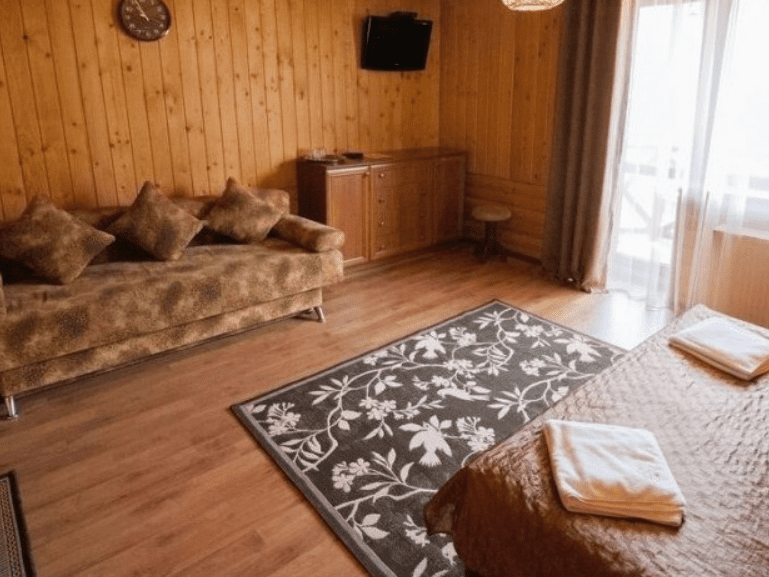 Однокомнатный номер создан для семейного отдыха. В номере есть двуспальная кровать, диван, телевизор, шкаф для вещей. Выход на балкон. Ванная комната оснащена душевой кабиной, комплектом полотенец.