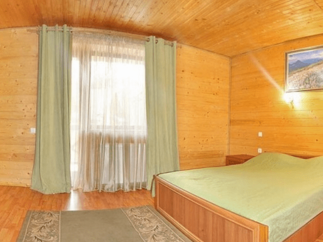 Однокомнатный номер общей площадью 35 кв.м. рассчитан на четырехместное размещение. Номер оборудован двухспальной кроватью, двумя односпальными кроватями, прикроватными тумбами, телевизором со спутниковым ТВ, комодом, шкафом для одежды. В номере есть выход на балкон с прекрасным видом на горы. Санузел оснащен душевой кабинкой с круглосуточной подачей холодной и горячей воды.