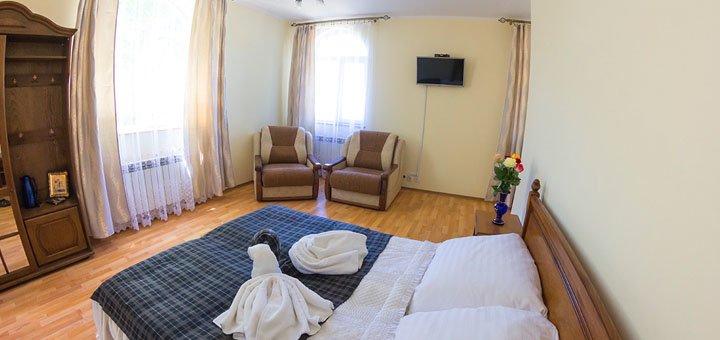| DELUXE (с балконом) | Четырехместный с двуспальным диваном и двумя односпальными кроватями | 1 | 3 | 1 | 1000 грн | договорная | договорная |