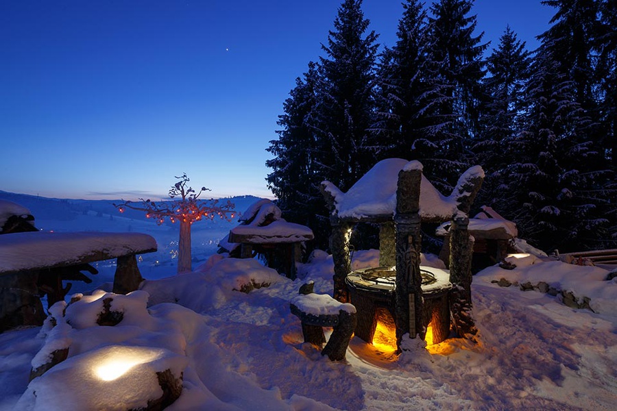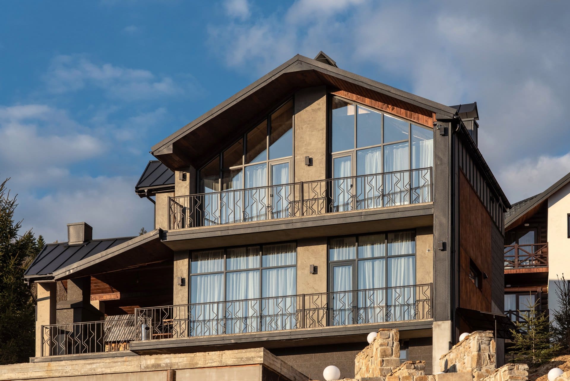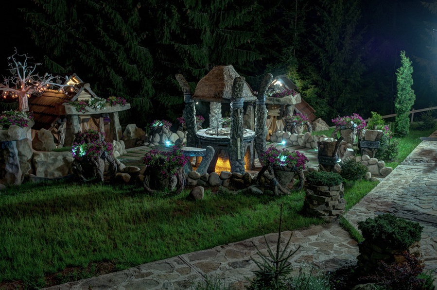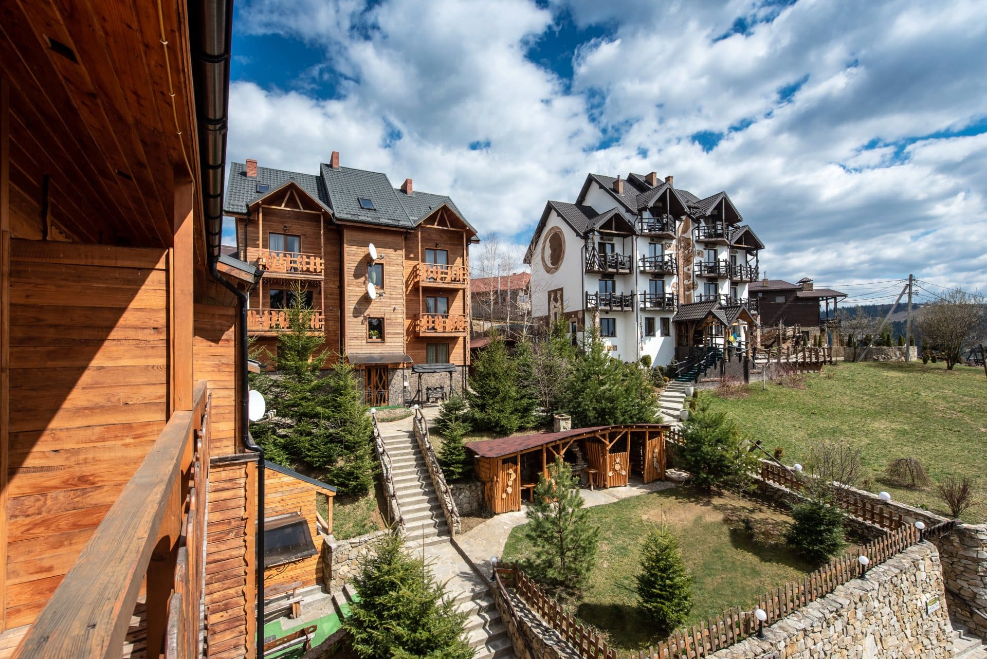 На просторной поляне, среди горных вершин, покрытых вечнозеленым лесом, расположился наш гостиничный комплекс. Три коттеджа могут принять одновременно до 40 гостей. Каждое из строений – это уникальный мини-отель в Буковеле, с собственным архитектурным решением. Объединяет все здания продуманный дизайн в этническом стиле с магической нотой средневековой сказки.