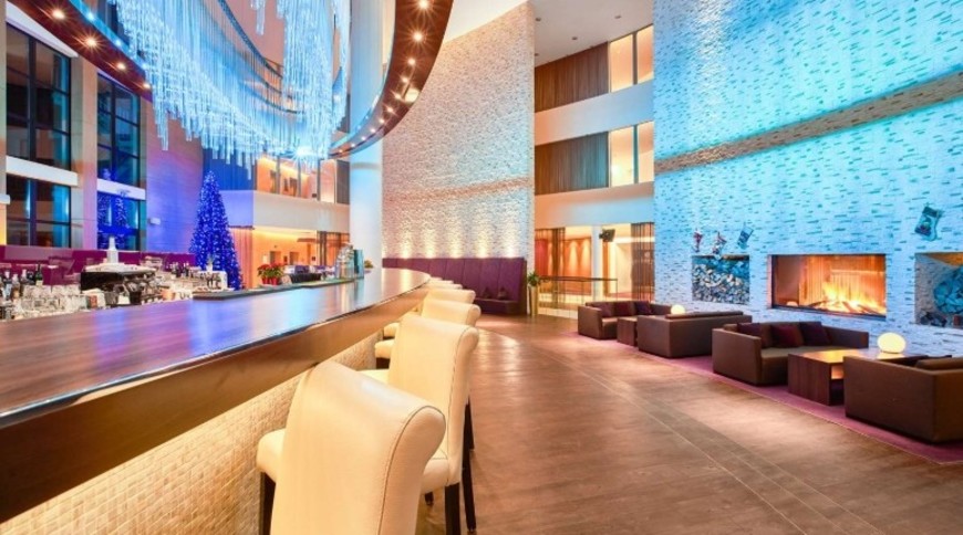 Заведение входит в состав пятизвездочного отеля и спа-центра «Radisson Blu Resort». В распоряжении гостей просторный основной зал ресторана с вместительностью на двести персон, а также террасы с живописным видом на Карпаты. Изысканный интерьер ресторана выполнен дизайнерами в стиле современной европейской классики – теплые песочные, кремовые и красные оттенки, мебель из натурального дерева с текстильными вставками, мягкий свет абажуров, отделка из декоративного камня и воздушный текстиль.