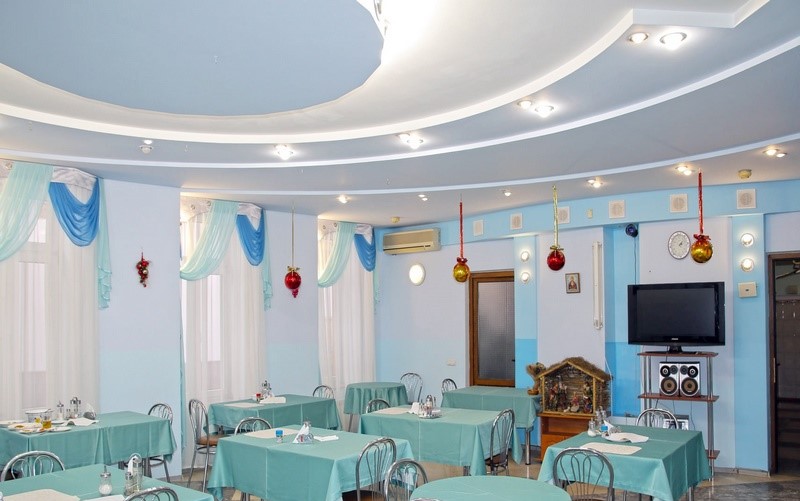 Стоимость путевки включает в себя расходы на трехразовое питание в условиях двух комфортных залов. При этом меню разрабатывается опытными диетологами. Чтобы гости могли передвигаться в столовую без верхней одежды, она соединена со спальным корпусом с помощью перехода.