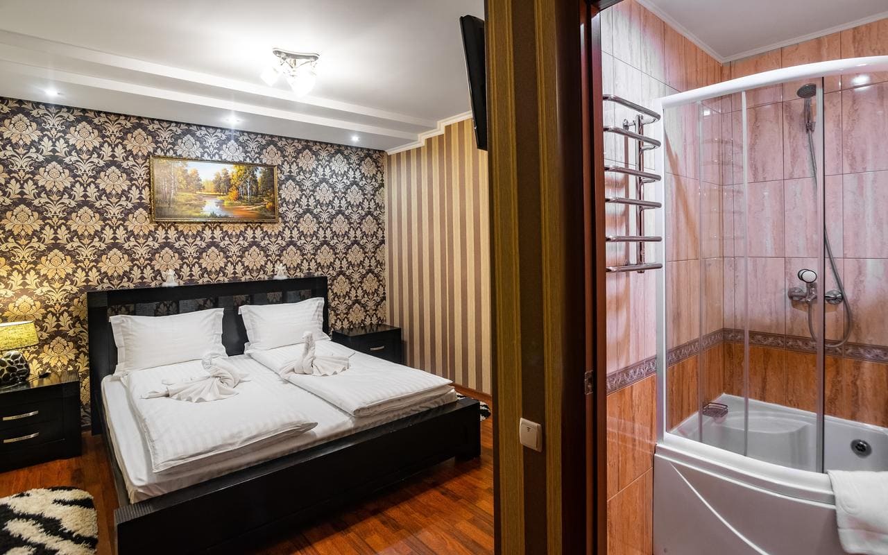 Двухкомнатный номер Люкс расположен в Коттедже № 1 на 4 этаже (мансарда), общей площадью 65 м², состоящий из гостиной и спальни. Номер рассчитан на 4 человека (при условии размещения 2-х человек в гостиной на раскладном диване). Номер имеет балкон с прекрасным видом на гору Хомяк, из окон видны горы Говерла и Петрос. Отдельный вход с улицы (необходимо подниматься по лестнице).